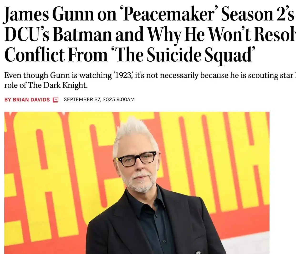 在特效预算的分配上,古恩展现出导演少见的商人思维。他将重金投入关键场景的视觉呈现,比如氪星毁灭的史诗感,却在日常场景中采用实景拍摄。这种"好钢用在刀刃上"的做法,既保证了视觉奇观,又为续集预留了创作空间。詹姆斯·古恩接手DC工作室后,迅速展现了他对IP开发的敏锐嗅觉。他明白,扎斯拉夫想要的不仅是一部部独立电影,而是一个能够持续造血的内容宇宙。因此,《和平天使》的潜力被迅速挖掘——古恩将其定位为“暗黑童话”风格的衍生剧集,既延续了原作的暴力美学,又通过非线性叙事拓展了世界观。
