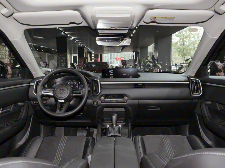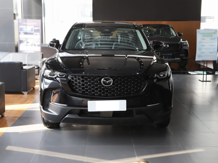 我们首先来看新车的外观设计方面,新车延续马自达标志性的“魂动”设计语言,前脸采用经典“盾牌”式中网,内部黑色蜂窝状格栅与细长矩阵LED大灯融为一体,营造出野性力量感。 灯组设计独具匠心,远近光分体式布局搭配LED日间行车灯带,夜间辨识度极高。前包围的黑色塑料包边进一步强化了越野气息,与银色护板形成视觉对比,既实用又美观。 整体车头设计简洁而不失霸气,完美契合“山系生活”的定位。